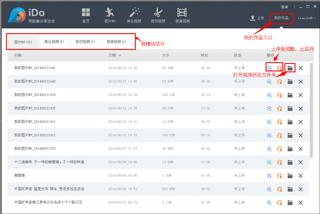 点击首页“我的作品”按钮,查看自己制作的所有作品;