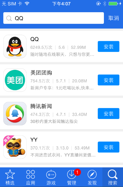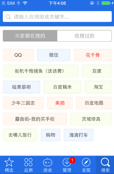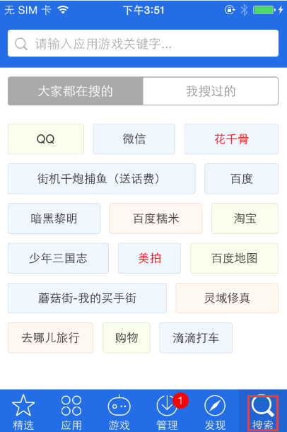 很多时候我们不知道我们想要找的APP被划分在哪个分类,或者是懒得去找,这时候就可以直接使用搜索功能了。