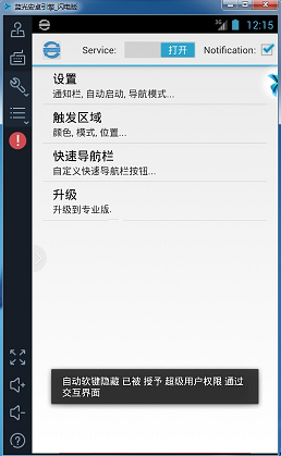 隐藏之后你仔细看会发现模拟器的最下面会有一个红色的线,点一下红色的线隐藏的按键就会出来了(如果实在看不到红线的点最边缘也可以)。然后我们返回到桌面开启辅助脚本。