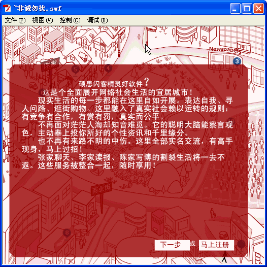 注:此图会提示您原文件是由普通的swf文件仍旧由FLEX项目文件生成的SWF文件。