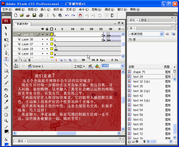 第三步:找出须要修正的SWF文字在FLASH顺序中翻开用闪客精灵导出的FLA文件,在库面板中查找出须要修正的文字位置,如我们修正“我们是谁”这四个字。