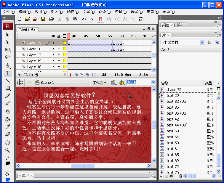 第四步:修正SWF文字在FLASH顺序中,单击FLASH工具里“文本工具”,然后单击文本窗口举行文字修正。