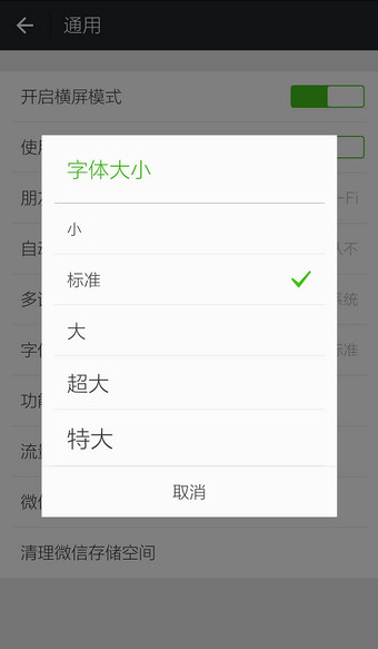 6.选择后,回到聊天界面,字体由标准变为超大