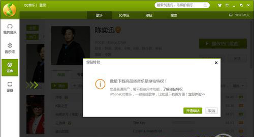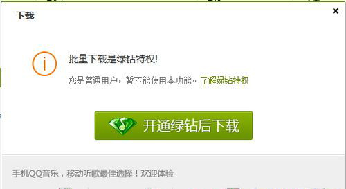 图1 腾讯QQ音乐非绿钻会员无法批量下载音乐歌曲?