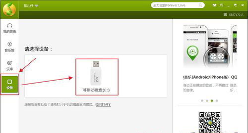 图3 插上U盘后让QQ音乐播放器检测到设备