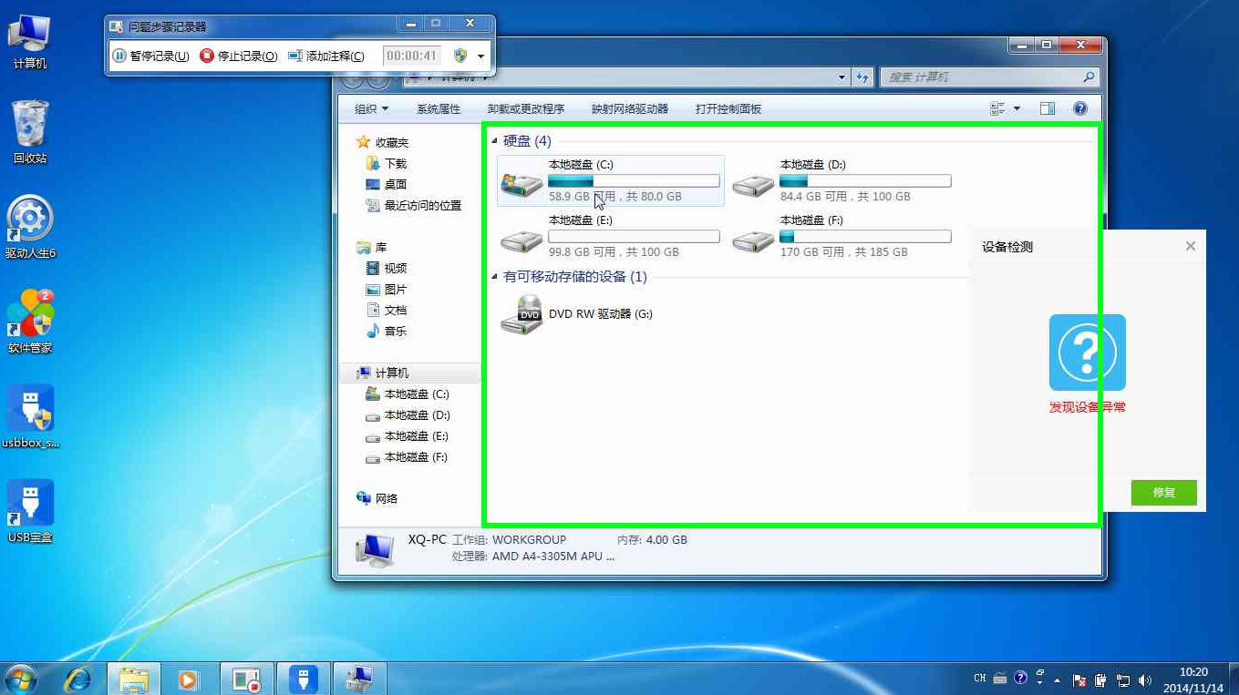 2、安装好之后打开,把U盘接到电脑上,USB宝盒会自动检测U盘接入之后的情况