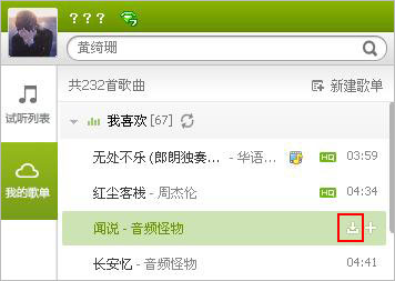 一、直接点击QQ音乐试听列表或我的歌单歌曲,即会显示下载按钮;或者右击歌曲名称也有“下载”入口;