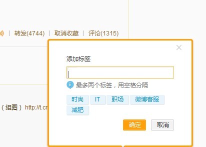 给收藏的微博加上标签,方便您日后使用标签快速查找以节省时间,同时系统也可以根据您的喜好进行微博推荐。