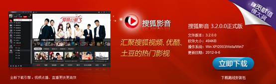 安装搜狐影音客户端,为视频观看提供理想加速效果,下载地址如上。