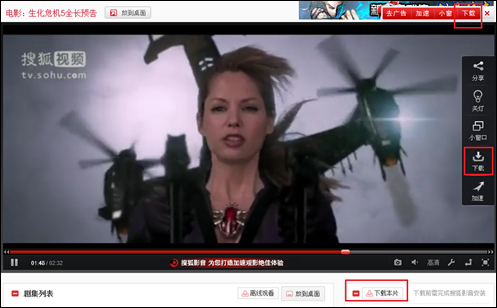 下载搜狐视频的官网节目需安装搜狐影音,若未安装则直接在视频播放页点击下载按钮;如图: