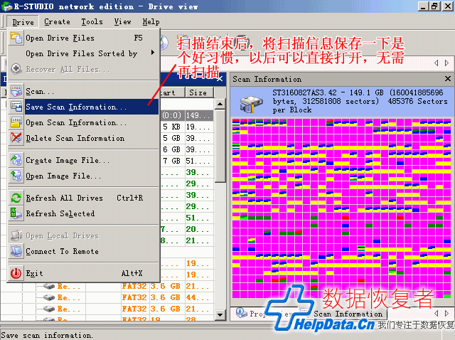 扫描结束后,将R-Studio的扫描信息保存一下是个好习惯,以后可以直接打开,无需再扫描。