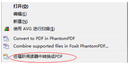 选择“在福昕阅读器中转换成 PDF”选项