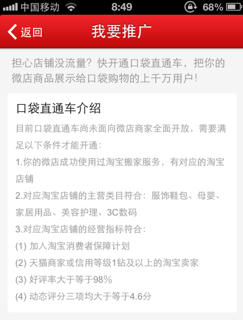 至于口袋直通车,这个是有限制的,限制要求点进去就看到啦。满足要求的自己可以开通。