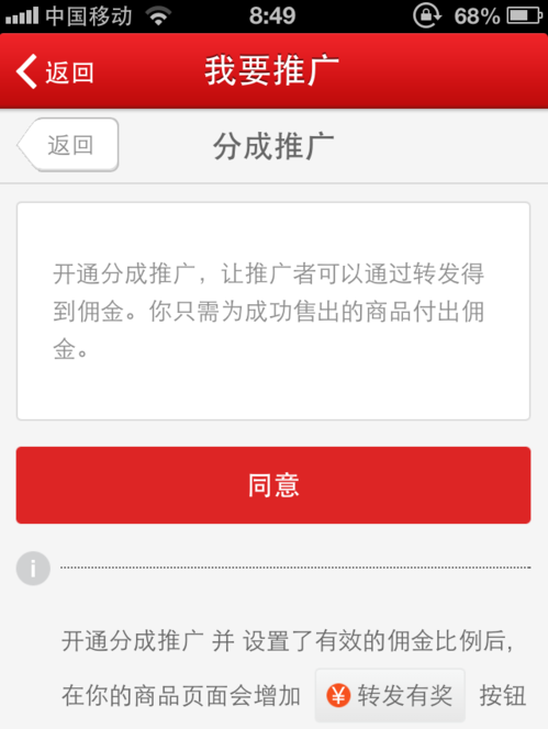 再说分成推广,这个旧市你把店铺你的商品发布出来,设置一个佣金,让别人帮助你转发宣传,当消费者通过转发购买了你店铺的商品后,他就能够获得佣金的一种推广方式。只要转发的人够多,那么你的推广就越大。这种方式不用自己费力,别人帮助你宣传,只是在商品卖出后给予一点佣金就够了。