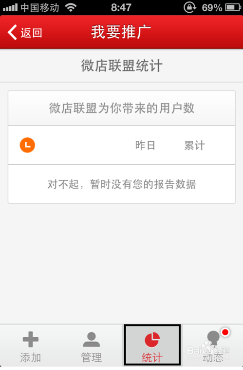 进入微店联盟后,里面有很多微店,你可以添加他们,利用这些微店给你的店铺带来流量和人气,选中一个和你经营项目相同的微店,点击加号添加。在管理中可以看到管理微店联盟的信息。统计中可以看到微店联盟给你带来的用户数量。动态中显示其他微店加你的请求等。总之微店联盟就是利用微店与微店之间相互推广的方式进行。