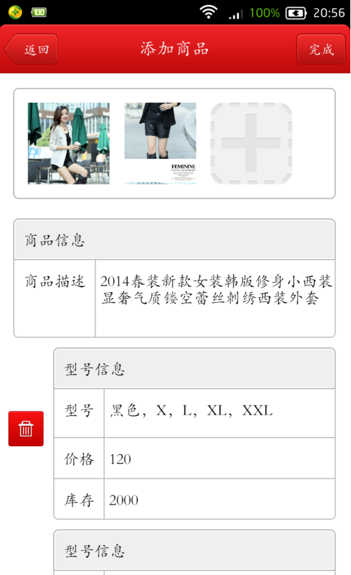 点击右上角的“添加”按钮,进入添加商品页面,在这个页面添加图片、填写商品描述、商品价格、商品库存等,第一张图片作为此商品的主图,所有图片都会出现在商品详情介绍中
