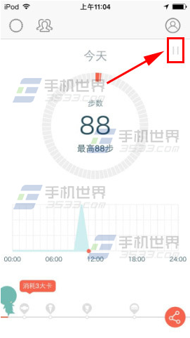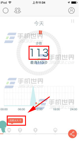 2、在屏幕中间可见今天的步数,左下角可见消耗的卡路里。