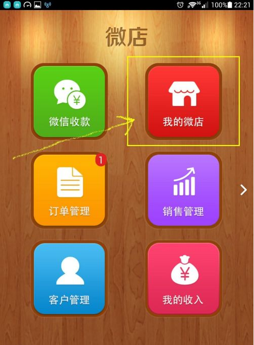 下载安装手机微店应用,完成后,点击图标进入主界面,开始逐步的装修。