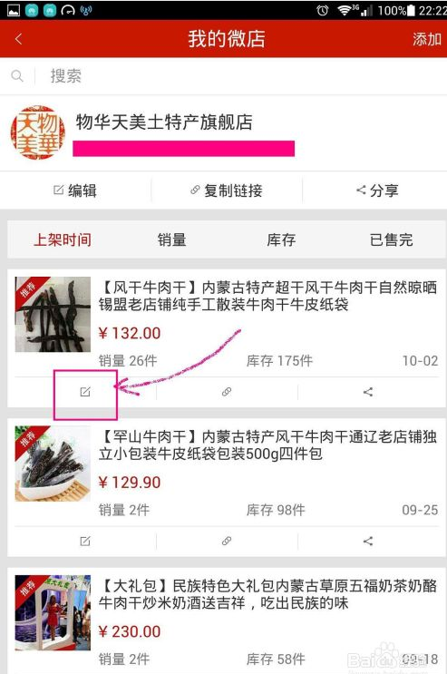 首先设置商品,如图所示,点击“编辑”这个图标进入。