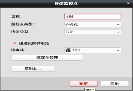以用复制到选项来一次性修改所有摄像机转发为子码流或者单独一个摄像机的码流。