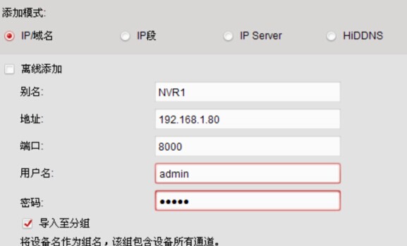 在分组选项中的编码通道下点选导入添加各监控点的摄像机。