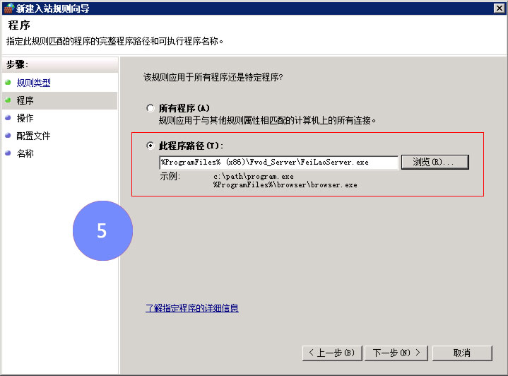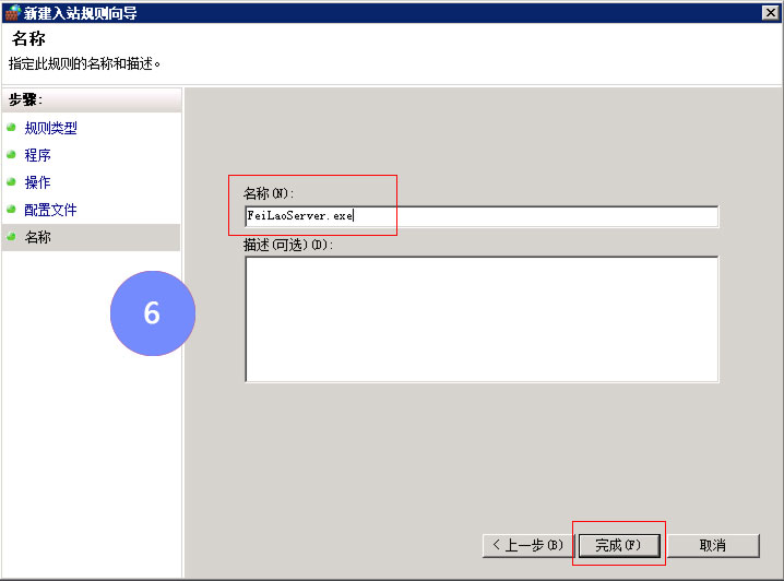 控制面板 => 检查防火墙状态 => 高级设置 => 入站规则,将FeiLaoServer.exe添加到例外程序中