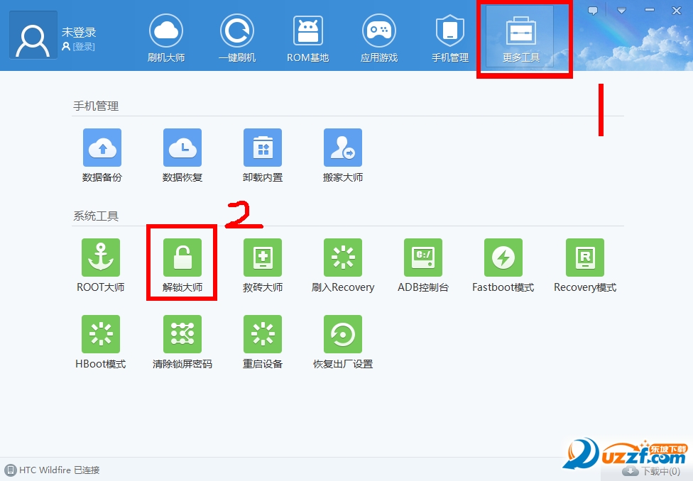 1、打开刷机大师,点击更多工具,可以看到到解锁大师 。
