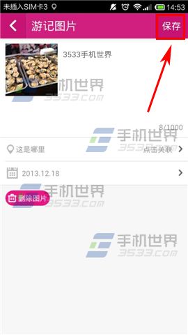 3)点击刚才添加的【照片】,就可以给该照片添加文字描述,还可以关联地点,编辑好后呢点击【保存】就可以啦,之后每张照片都是这样添加的哦。(如下图)