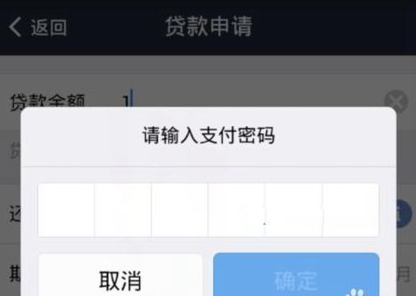 4、再接下来,在这里输入支付宝的支付密码。如果是第一次借钱这一步下去还需要再用手机动态验证码,验证一次(如果你的手机支持指纹验证,使用指纹也可以,验证完之后会进行手机验证,输入手机验证码,确认即可)。如下图所示:
