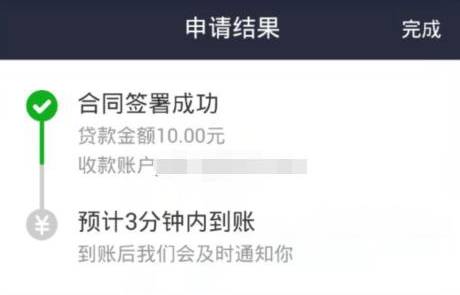 5、所有验证通过之后,我们就可以顺利通过了,等着三分钟之内就会把刚刚借的钱打到你的账号上,一般可以及时到账,支付宝账户收到款之后可以提现使用了。如下图所示:
