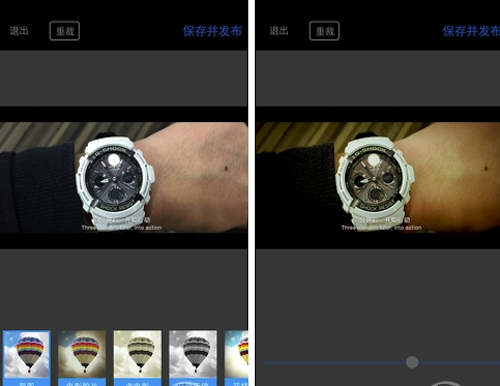 加完文字,选择适合的滤镜,点保存并发布,其实就相当于社交应用的分享,只是把照片分享到这个App中,照片会自动存储在照片库中。同时也可以分享到包括微信、微博等社交工具。想象一下,发一组自己的电影大片在朋友圈秀一秀,绝对会有很多人点赞。