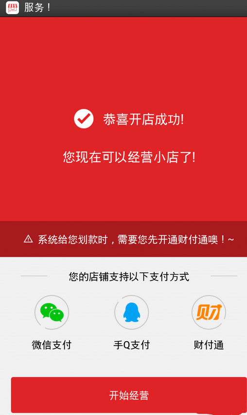 5、这样新的店铺就开通成功了,现在就来看看一些基本操作吧。点击下面的:“开始经营”