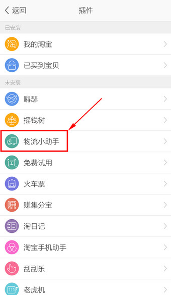3.在【未安装】里找到【物流小助手】进入