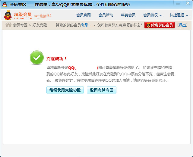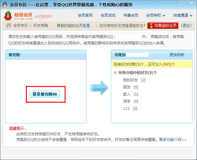 考虑到许多QQ会员用户注册了自己心仪的新号码,想把自己以前的好友都添加到新号码上来,但是苦于人工一个个地添加工作量太大,难免一筹莫展。为此腾讯特别为QQ会员们准备了一项全新的功能:好友克隆!