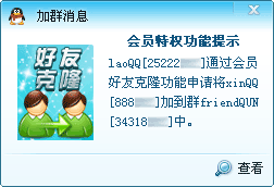 被克隆的群,群主和群管理员将收到来自克隆到QQ的加入申请(如下图),请您耐心等待身份验证。