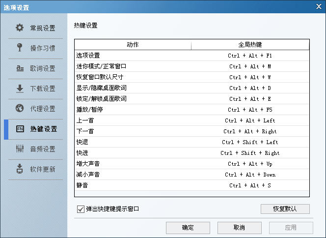 快捷键设置,喜欢用快捷键控制播放的用户很喜欢用,在这里可以根据自己的爱好进行修改。