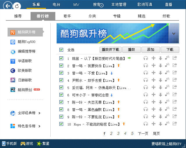 酷狗榜单家族、狗友推荐、酷吧、狗窝,最新流行音乐一网打尽;