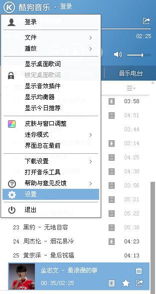 如:歌词显示设置,设置桌面歌词的显示样式。