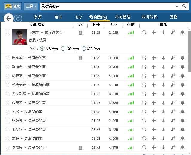 在知道歌曲名的前提下,可以进行歌曲搜索。