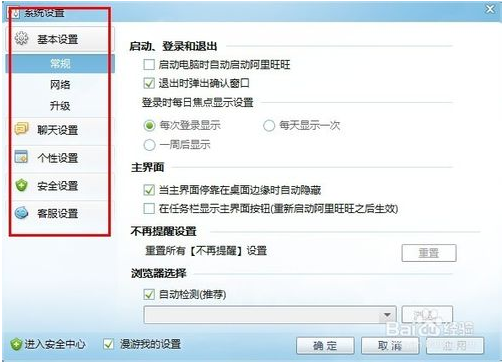 2、跳出系统设置对话框,在这里我们可以设置一些基本的参数,如聊天设置,个性设置等等。