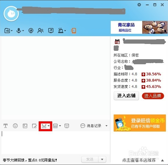 4、第三种方法,如何想让对方看图片的一部分,那么可以用剪刀按钮(红框处)这样接收图片方就直接看到了。