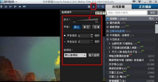 3、播放视频过程中,点击浮动控制栏中的“音”进行相关操作;