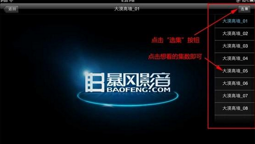 2、在播放页面,点击右上角的“选集”按钮,会出现一个下拉框,找到你想看的集数直接点击即可马上播放,如下图