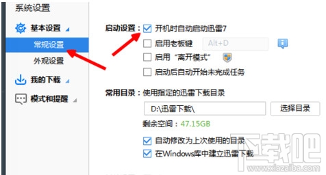 5.点击基本设置>常规设置,取消勾选“开机时自动启动迅雷8”,点击“确定”退出就OK了。
