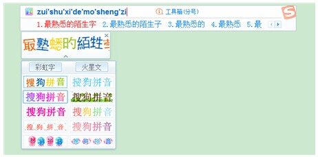 另外,细心的小伙伴们一定注意到了,在我们开启关闭彩虹字功能的过程中,在附近总有一个火星文功能晃晃悠悠地出现在你的眼皮子底下。点击开启火星文功能,我们输入的字一下子变成了“最熟悉的陌生字”,搭配上彩虹字五颜六色的外衣,顿时觉得自己的输入法“青春靓丽时尚萌萌哒”,随时可以去冒充00后有木有?