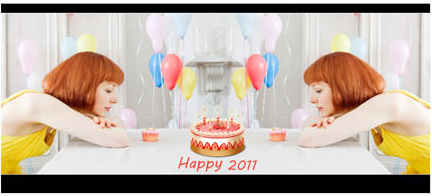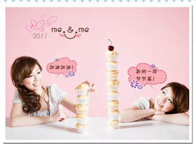 当然同一张照片也能直接制作这样的双胞胎效果哦(拼接后再添加蛋糕和文字素材),快来看看吧: