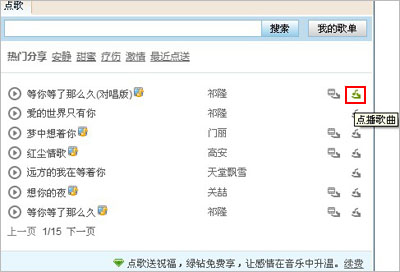 注:给好友点歌,对方若是电脑QQ在线,会收到点歌信息提示;若电脑不在线但手机QQ音乐登录在线,手机QQ音乐会收到点歌信息。