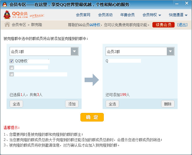 只有群主,才可使用群克隆功能,且一个QQ帐户一天内只能操作群克隆3次。