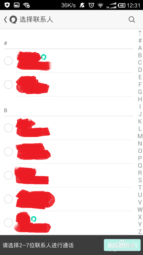 6、同时还提供多人电话功能,能把手机联系人添加到一个对话中,进行多人的同时对话,选中任务,点击确定就可以了