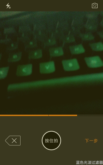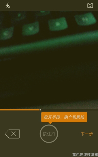 4、按住拍,和美拍方法是一样的,中间可以切换场景啊什么的,只不过时间是15秒